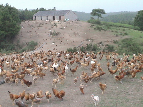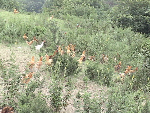 把鸡散养于山岭松林之间,让鸡生长在绿色原野之中,促进了鸡的生长速度,提高了鸡的抗病能力,还有利于树林虫害的防治,是一举多得的好事.养出来的鸡品质好,市场销路旺.该养殖户杨秀胜从5月份把7000只鸡送上山,经过精心饲养,存活率都在百分之八十以上,七月份已出栏3000余只,存栏2000余只,效益明显。