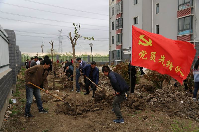 412,淮南农场党委班子带领全场70多名管理人员组成党员先锋队,在金鑫花园职工小区开展义务植树活动,落实2018年绿化花化方案,示范带头全场增效增绿行动,打造生态宜居文明新农场,助推振兴战略和绿色发展。