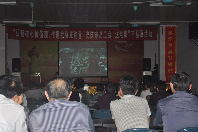 428,安庆市总工会送电影下基层活动走进皖河农场,为农场职工群众放映了爱国主义影片《我的长征》,弘扬核心价值观,传播社会正能量,营造了庆祝五一、构建和谐的良好氛围,丰富了农场人的精神文化生活。(徐丽燕)
