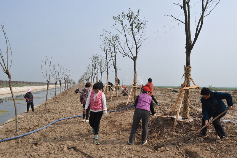 入春以来,安徽潘村湖农场将纵贯潘村洼南北的苏义干沟沿岸主干道农场段作为推进美好场镇建设的重点路段,掀起今年“绿化家园”活动热潮。预计到本月底,将基本建成总面积70亩、总长为3.2公里,栽植松柏、香樟、垂柳、樱花、红叶石楠等风景树1.6万余棵及常绿草坪的潘村洼圩区首个绿色景观长廊。届时,四季常绿的生态景观林带、四时变换的田园自然风光将融为一体,在广袤原野上形成一道四季有景、景景不同的靓丽风景线,凸显农场绿化增量、增景与亮点。(杨登宏)